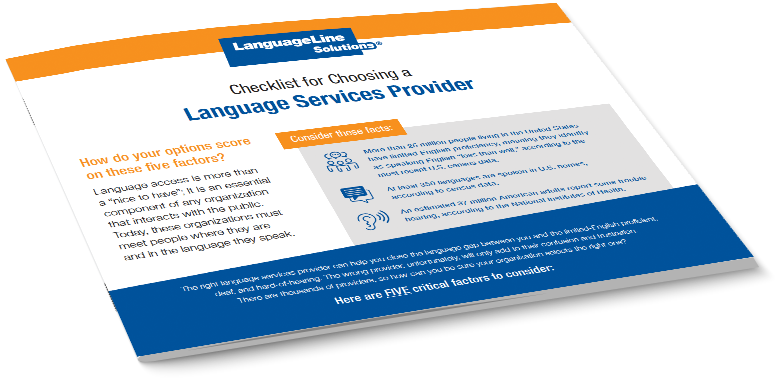 Our Checklist for Choosing a Language Services Provider walks you through the process of evaluating which interpretation or translation service is appropriate for you. It simplifies your decision making and makes it easy for you to compare and contrast potential providers.