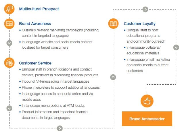 In a survey of 100 financial institutions, 61 percent cited “removing friction from the customer journey” as the most important priority in retail banking. For multicultural consumers, there is likely no greater source of friction than language.