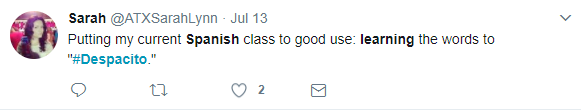 People who may not remember much from Spanish class will take the time to teach themselves the lyrics to a catchy song like “Despacito.”