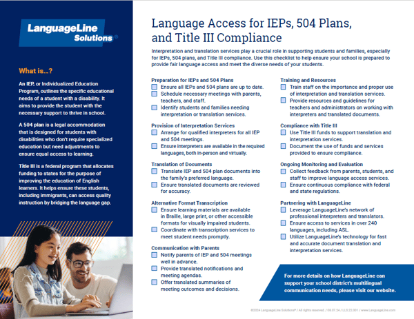 Language Access for IEPs, 504 Plans, and Title III Compliance